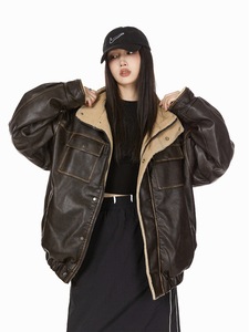 ICH MODE美式美拉德皮衣外套女2025新款春秋季棉服皮夹克夹棉加厚