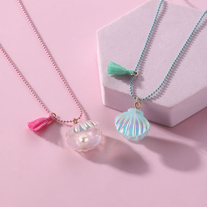 跨境热卖儿童项链卡通创意贝壳珍珠流苏甜美时尚锁骨链首饰批发