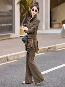 时尚休闲套装2025秋季新款女装立领拉链外套喇叭裤两件套RX9271