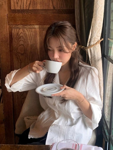 现货2025秋季新韩国东大门tan*at气质纯色花边领单排扣衬衫上衣女