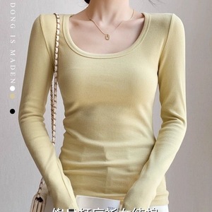 螺纹领恤短款长袖秋冬季打底衫女内搭上衣欧美新款2025早秋修身