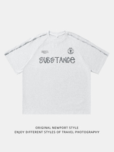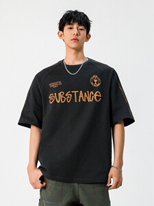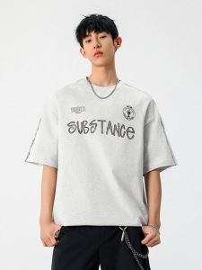 撞色手绘字母印花短袖T恤男25夏季新款美式复古纯棉宽松半袖体恤q
