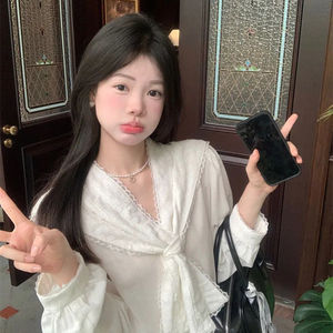 法式蕾丝花边拼接设计感洋气长袖衬衫秋季新款宽松小众别致上衣女