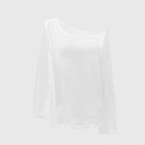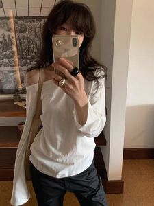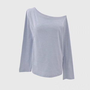 现货2025秋季新款韩国东大门De*rest宽松纯色显瘦斜肩长袖T恤上衣