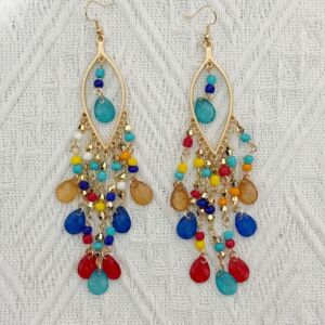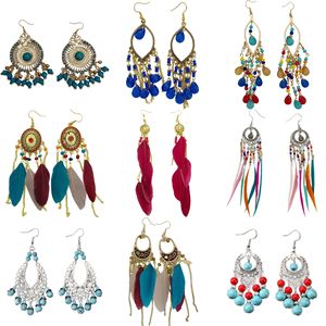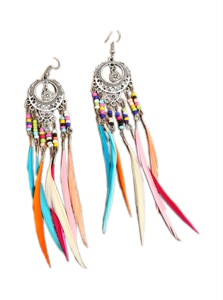 波西米亚流苏串珠耳环女高级水晶感度假耳钉设计复古民族风耳饰