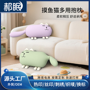 夏季凉感冰丝透气摸鱼猫靠枕小动物女生睡觉卧室床上侧睡夹腿枕头