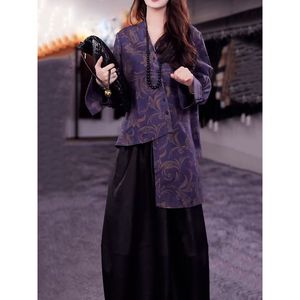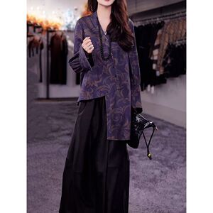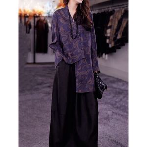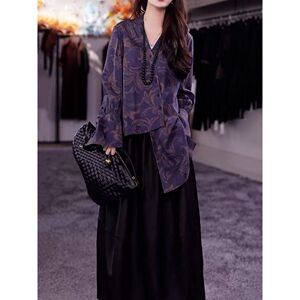 洋气名媛风好看裙套装女秋季新款印花长袖不规则衬衫+半身裙8391
