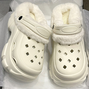 7.0踩屎感eva洞洞棉拖鞋女冬季家居室内厚底增高加绒毛毛防水外穿