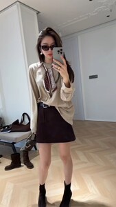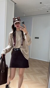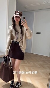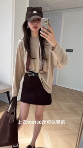 秋季新款温柔燕麦色宽松懒人针织衫上衣+优雅浪漫小丝巾146
