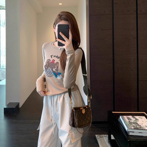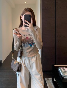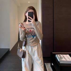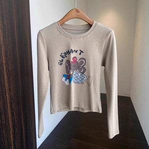 ED931减龄洋气 巨洋气短款卡通字母印花打底衫女长袖T恤秋新款
