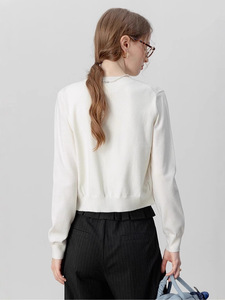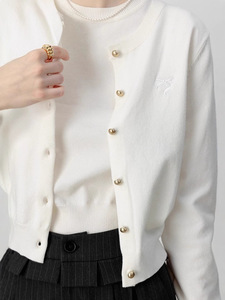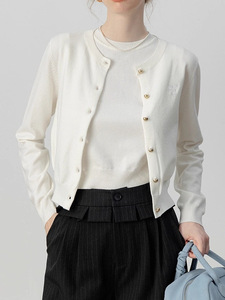 时髦修身针织开衫白色针织衫慵懒风气质通勤百搭两件套上衣