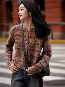 笑涵<巴恩风.毛衣意大利工艺山羊绒北欧费尔岛提花毛针织开衫の