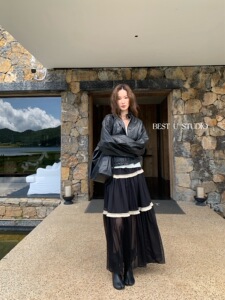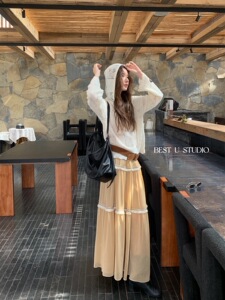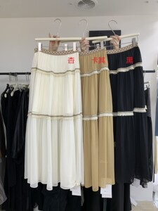 【高品质订货】拼接半身裙女温柔百搭小众褶皱长裙A字裙半身裙