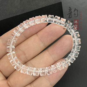 天然白水晶车轮直切盘珠手链 diy饰品散珠项链配饰隔珠女士手串