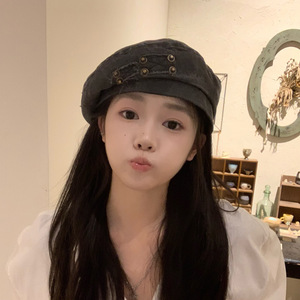个性小众做旧贝雷帽女秋季时尚个性画家帽大头围显脸小报童帽女