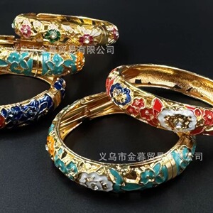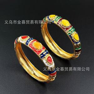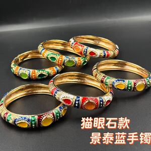 景泰蓝开口手镯饰品复古风猫眼石金色手镯手链女滴油珐琅彩民族风