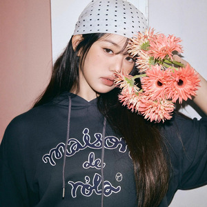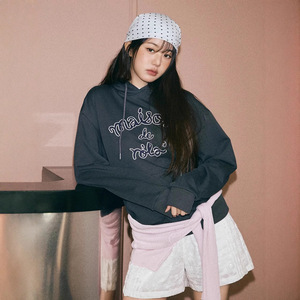 即墨现货~韩国潮牌设计师款小众休闲刺绣字母张元英同款连帽卫衣