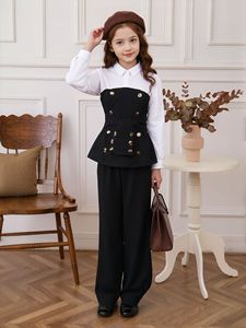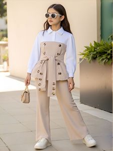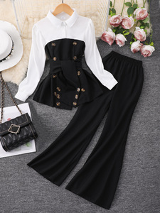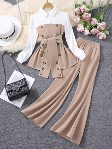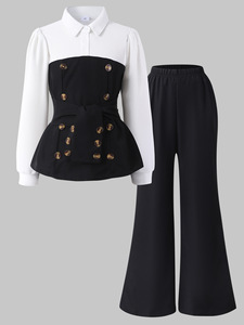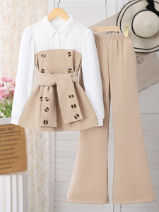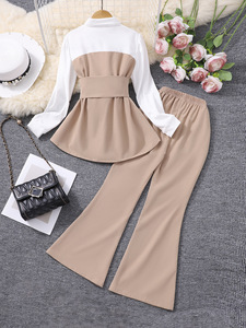 大童(女)两件套,拼接上衣+喇叭长裤套装