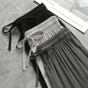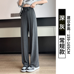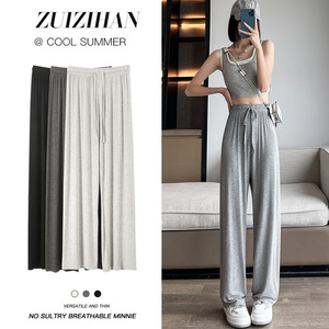 灰色莫代尔阔腿裤女夏季薄款宽松高腰垂感直筒休闲舞蹈睡裤防晒裤