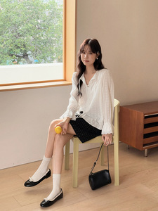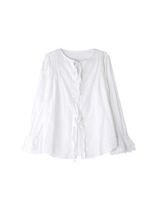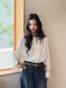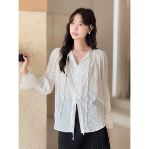 【拂袖生花】歌铭法式复古交叉绑带衬衫秋季新款喇叭袖上衣T1986F