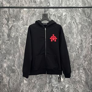 秋冬CH拼皮十字架长袖拉链连帽卫衣男女纯棉帽衫外套宽松休闲批发