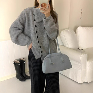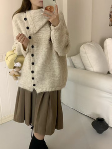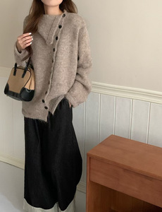 慵懒高级感斜襟纽扣翻领毛衣女秋冬韩系设计感宽松软糯针织衫上衣