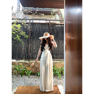 ICELOLLY【米兰假日】一字肩抹胸上衣女夏超火小众不撞款套装穿搭