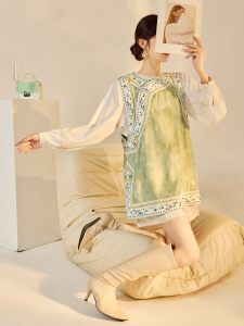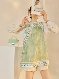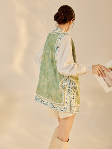秋季新中式古典斜襟绣花中长款马甲女复古精致盘扣无袖背心 N8013