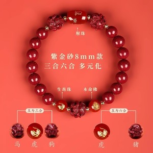 2026年新朱砂手串女鼠牛兔马本命年紫金砂手链男三合六合正品礼物