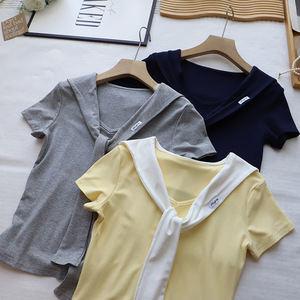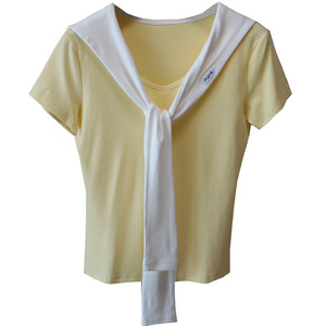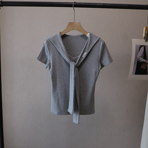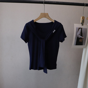 [比正]2025秋季新韩系时尚海军领修身显瘦休闲百搭短袖T恤女4990