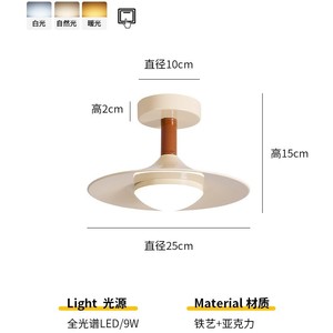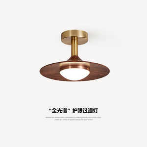 侘寂风走廊吸顶灯胡桃木色中古玄关阳台衣帽间灯全光谱护眼餐厅灯