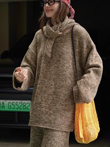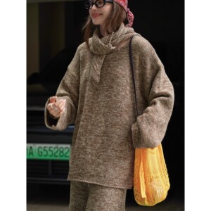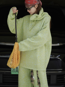 卢浮秋冬新款韩系时髦松弛感披肩平纹落肩袖毛衣柔软亲肤上衣女