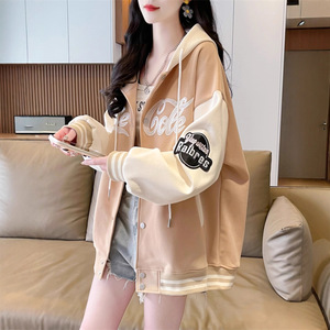 早春拼色棒球服外套女夏季薄款2025新款上衣宽松小个子开衫卫衣潮