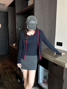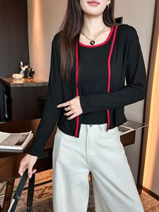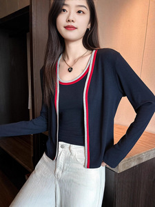 厂家批发撞色开衫长袖针织衫外套女2025秋季新款修身显瘦百搭上衣