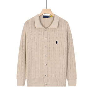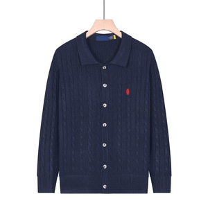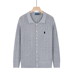 男装春秋款商务翻领开衫扣子毛线衣休闲青年麻花针织衫小马标外套