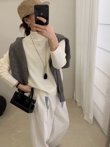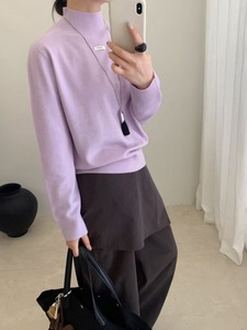 韩系秋冬新款多巴胺色系亲肤绒无缝一体中领针织打底衫女亲肤套衫