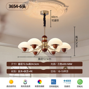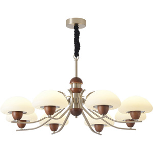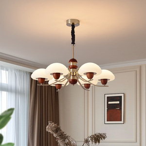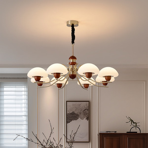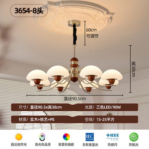 中古风客厅灯复古胡桃木色餐厅灯2025新款实木蘑菇设计风卧室吊灯