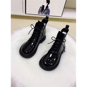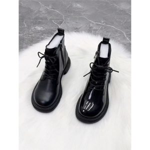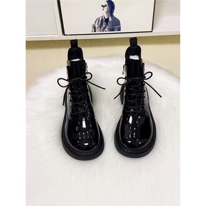 真皮马丁靴女2025秋季高级感厚底侧拉链亮面时尚中筒美式复古靴子
