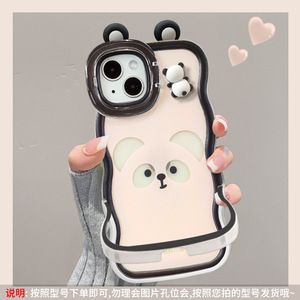 可爱熊猫公仔适用iphone17pro手机壳16硅胶防摔14双支架15新女款