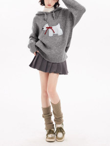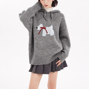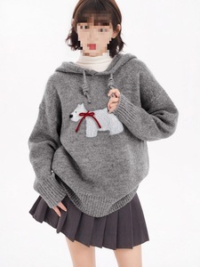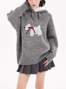 灰色小狗连帽卫衣女2025新款爆款可爱毛衣秋冬女慵懒高级感上衣
