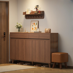 鞋柜家用门口入户新款2025爆款室内新中式玄关柜一体靠墙实木鞋架