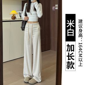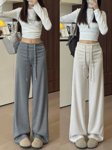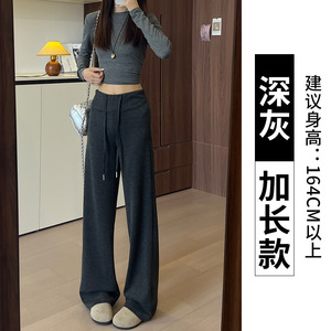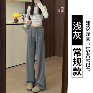 浅灰运动裤女秋季2025新款高腰垂感宽松显瘦直筒窄版休闲阔腿卫裤