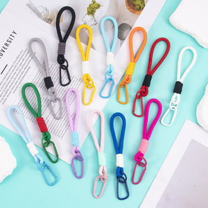 Ins风手工打结撞色织带绳子钥匙扣手机挂件毛绒玩偶公仔配饰提绳