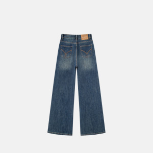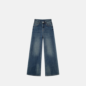 小个子显高神器2025秋季弹力阔腿牛仔裤高腰垂感直筒牛仔裤批发