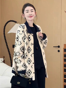 复古时尚设计感小众翻领撞色针织开衫女秋季新款慵懒宽松显瘦上衣