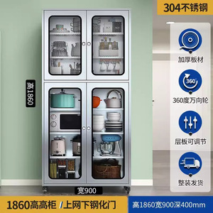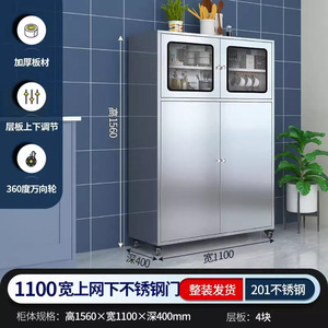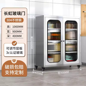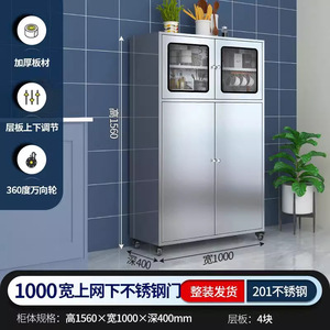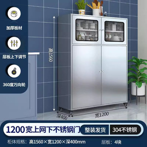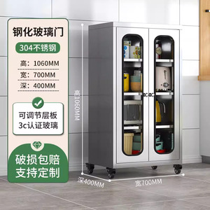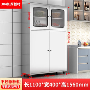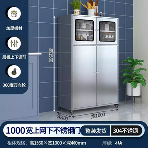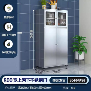 304不锈钢橱柜餐边柜家用厨房碗柜不锈钢储物柜锅具收纳柜置物柜