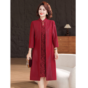 2025年春夏新款假两件妈妈装薄款连衣裙结婚喜婆婆婚宴礼服裙