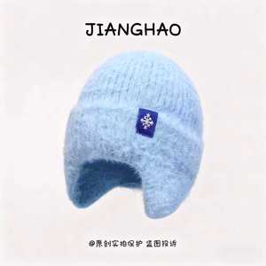 日本舒适的帽子男女秋冬护耳保暖毛线帽高弹御寒棉帽