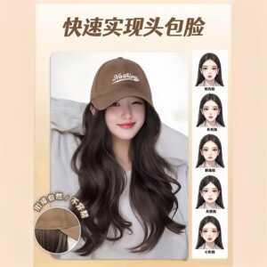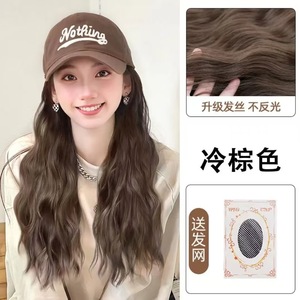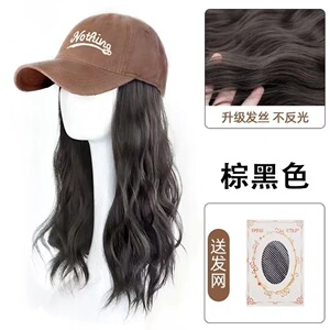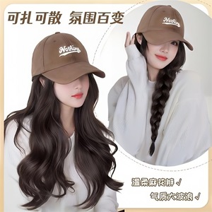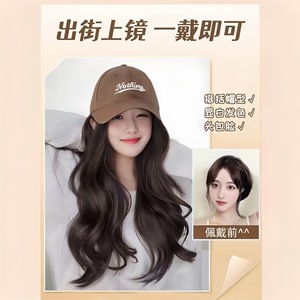 帽子假发女一体全头套式氛围感长卷发时尚自然仿真发大波浪假发帽