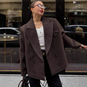 外贸欧美风秋冬新款长袖短款气质洋气呢子跨境女装大码百搭外套女